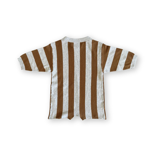 Grown - Vertical Stripe Romper - Grey Marle & Brownie