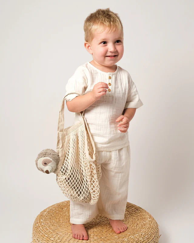 Light and comfy, our Muslin Frankie Grandpa Shirt is the perfect warm-weather basic.