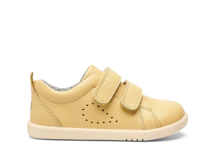 These street-styled trainers are perfect for everyday wear. The premium leather upper is ultra soft and breathable, while a double strap closure provides an easy, secure fit. A cotton knit lining and padded heel make the GRASS COURT as comfortable as it is cool. Suitable for confident walkers, this Bobux style fits true to size.