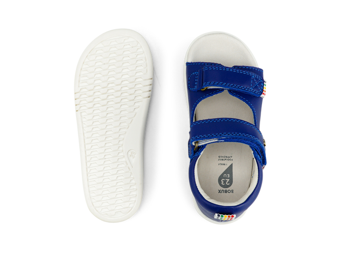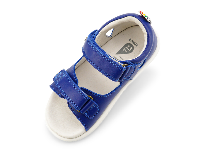 The Rise is a playful kids' sandal with incredible support and breathability for warm summer days. Both the toe and ankle fastening open completely for swift access, making life easy for all. Independent kids can do it themselves or parents can get out the door at pace. With a padded collar for comfort and playful coloured tags, this classic navy shoe features a fast-drying, Quick Dry™ leather upper making it ideal for a spot of afternoon waterplay. Suitable for confident walkers and fits up to one size longer in length.