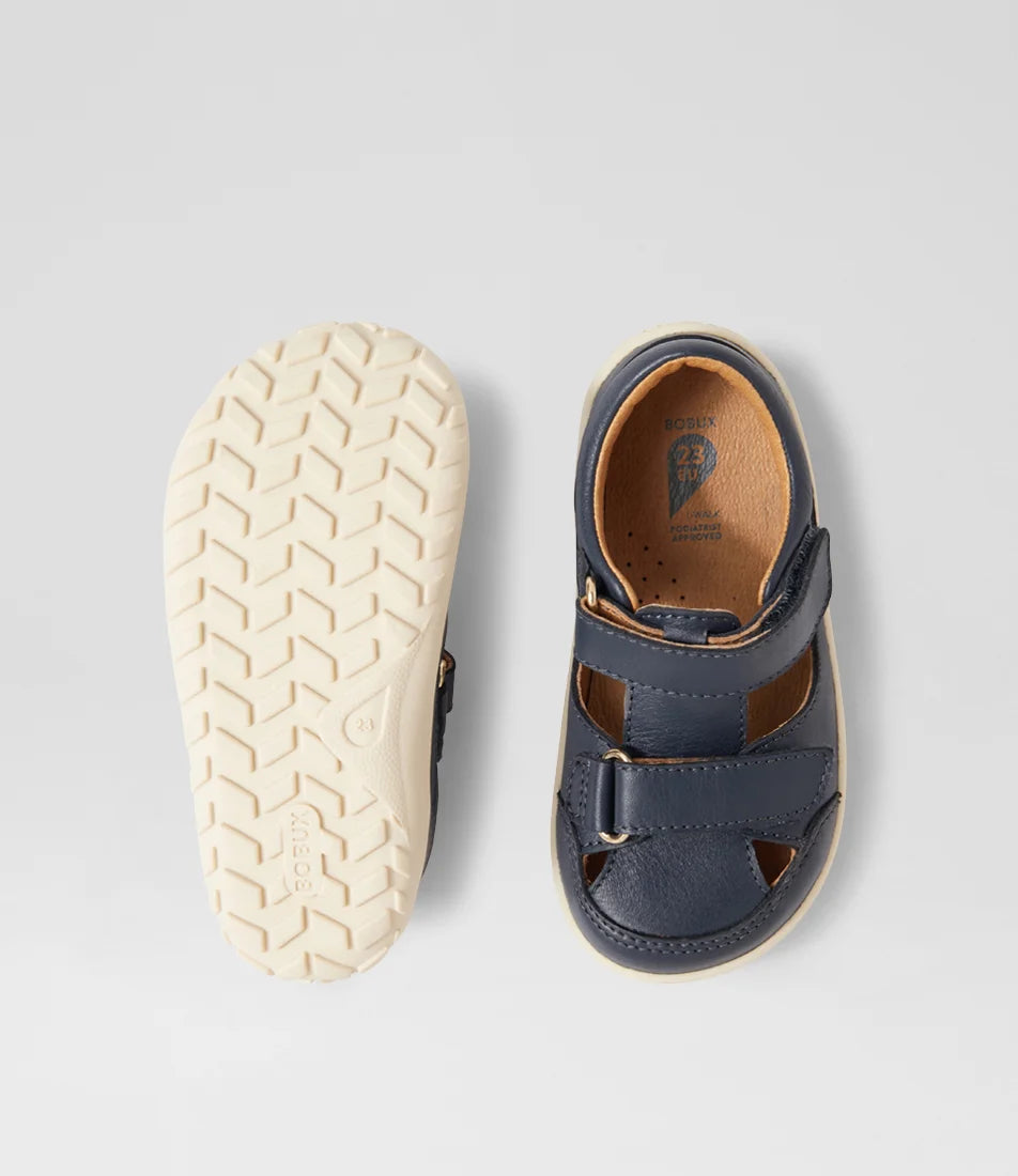 The TROOP sandals are a simple style for busy kids. The double-strap design has excellent adjustability, and is easy for kids to put on and take off. A padded ankle collar and grippy rubber sole provides the comfort and durability to keep going and going. Designed for Extreme Natural Movement, TROOP features a flat sole and barefoot-shaped toe-box, and is a hero of our Alpha by Bobux collection. Made with confident young walkers in mind.