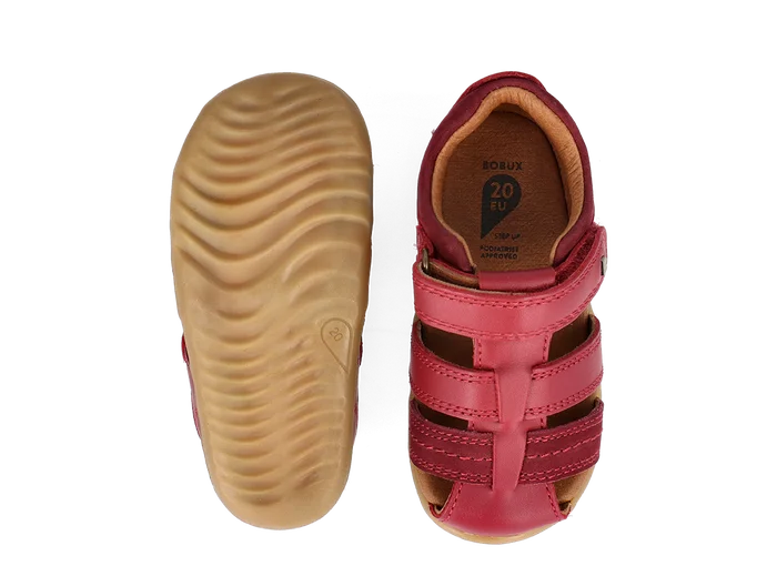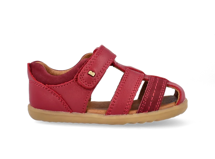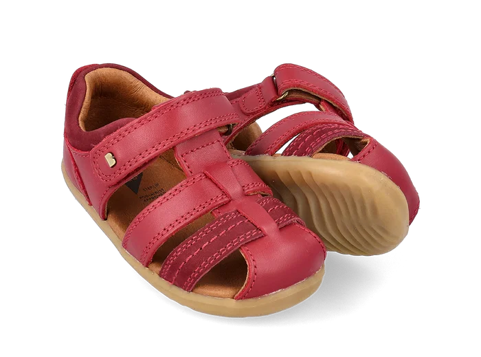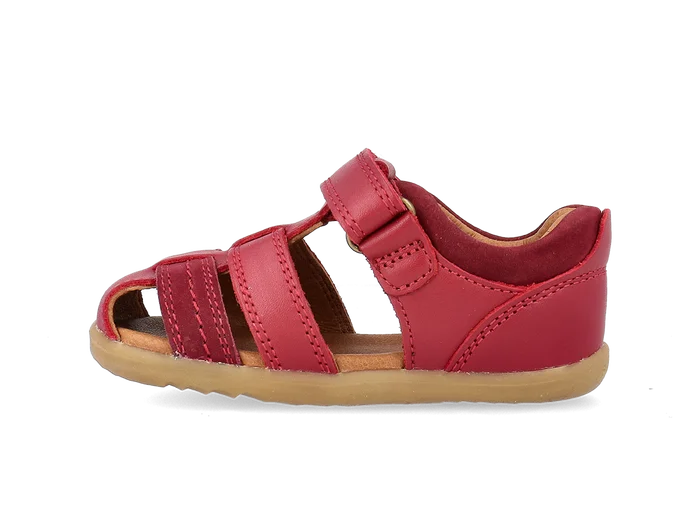 These classic summer sandals have a closed toe for added protection, while open sides provide airflow and breathability.The ROAM sandals boast an ankle strap fastening for a secure, adjustable fit, padded collar for comfort and our signature brass icon rivets add sophistication. Suitable for first walkers, this Bobux style fits average width feet, and is true to size.