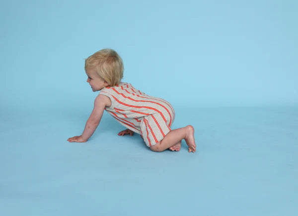 *Last Size* Grown - Knitted Terry Striped Romper Dune/Rosso - size 0