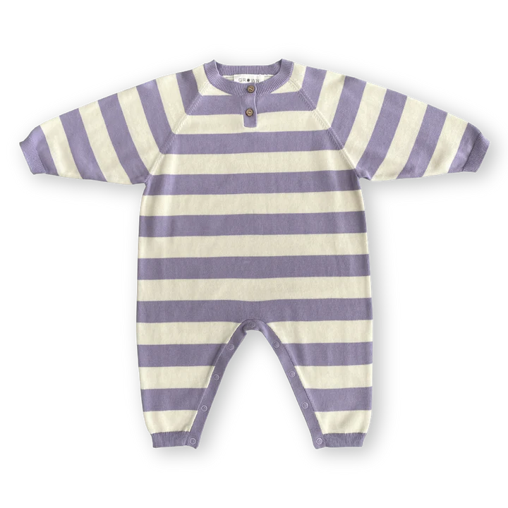 Grown - Organic Striped Essential Starsuit - Iris/Milk