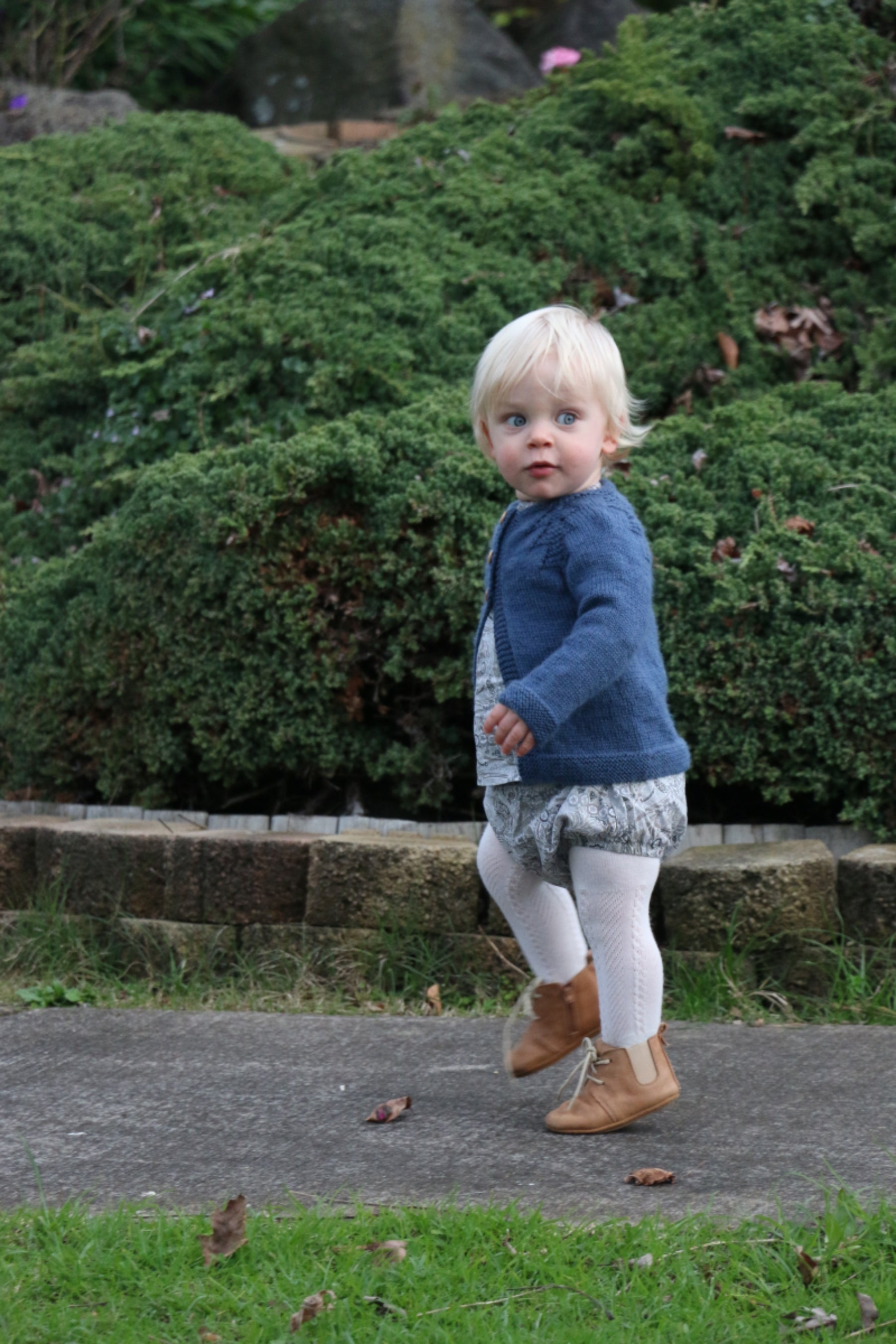 Our model Solomon wears handknit Nautical Cardigan - Navy