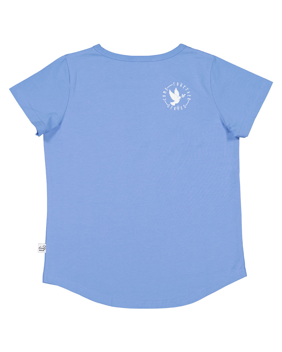 95% Cotton 5% Elastane Tee in Blue with Dolphin Print on the front.