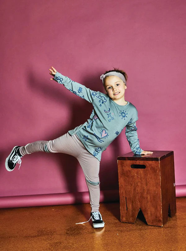 The Ayla Longsleeve packs a punch with the perfect combination of super soft Merino wool and sweet girly details, including a dipped hem, side placket cut outs and a cute allover screenprint.