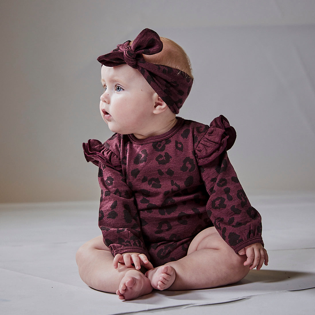 100% Merino Headband in Mulberry with Cheetah Print