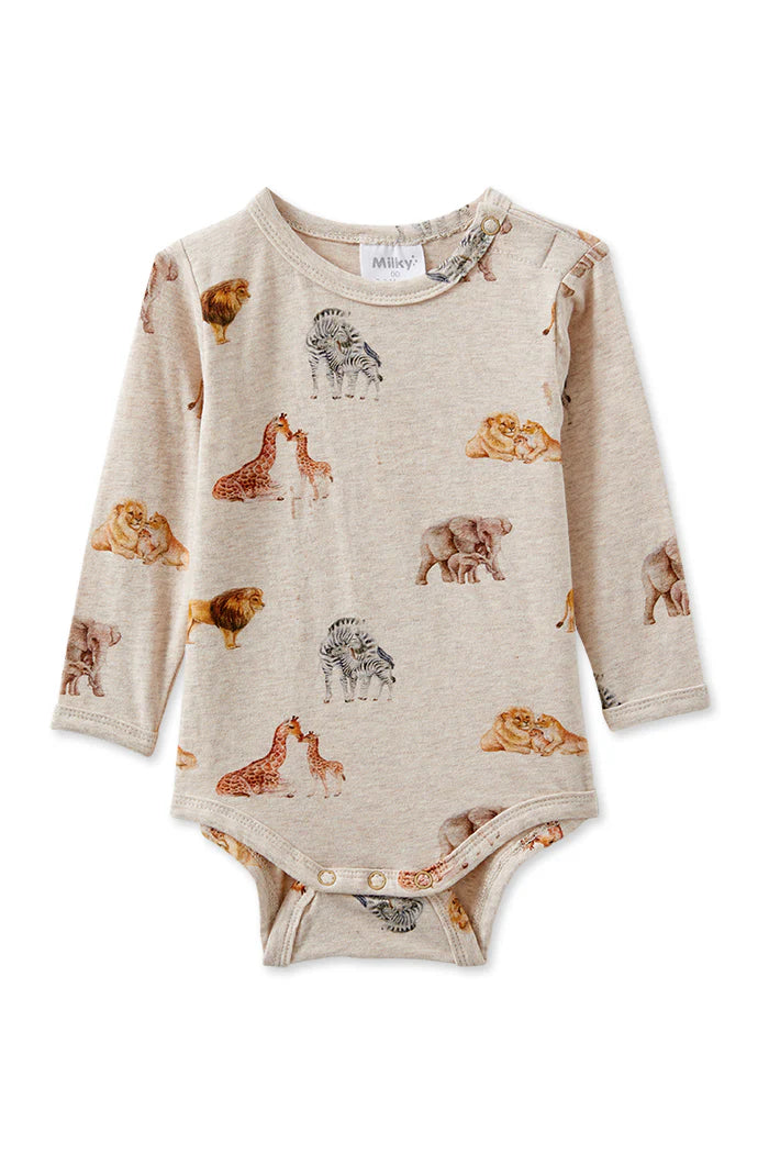 Milky Clothing Wildlife Bubbysuit is a charming and timeless addition to your little one’s wardrobe, thoughtfully designed for both practicality and comfort. This long-sleeve bubbysuit is perfect on its own or paired with basic pants or leggings, making it a versatile choice for any occasion.