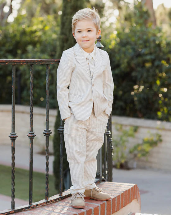 Suit up in our Sebastian Pant. This tailored look is made from our soft textured cotton melange fabric; featuring an adjustable elasticized waistband, zip fly with a marbled button, and pockets.B