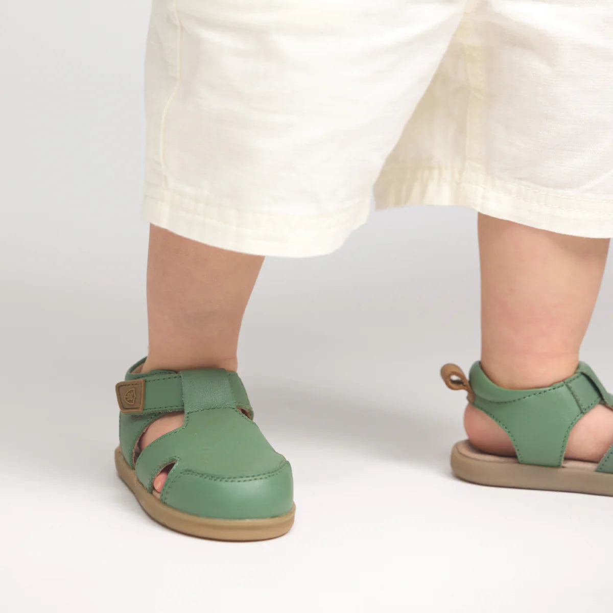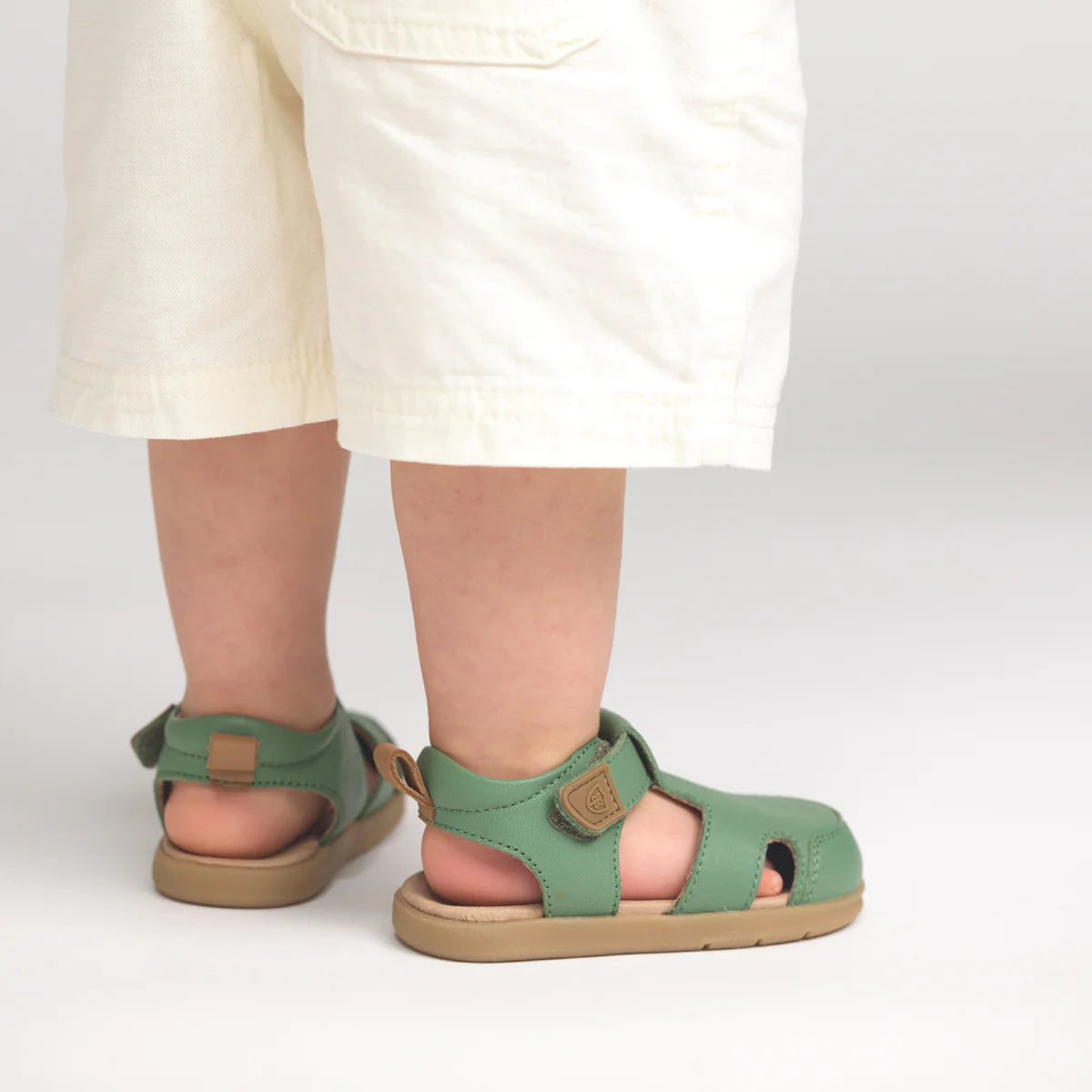 Perfect for everyday wear, Eli is a closed-toe, podiatrist-approved sandal with an adjustable Velcro top strap and contrast feature detailing. The padded footbed pairs with a flexible, custom-designed rubber outsole, making it ideal for growing feet.