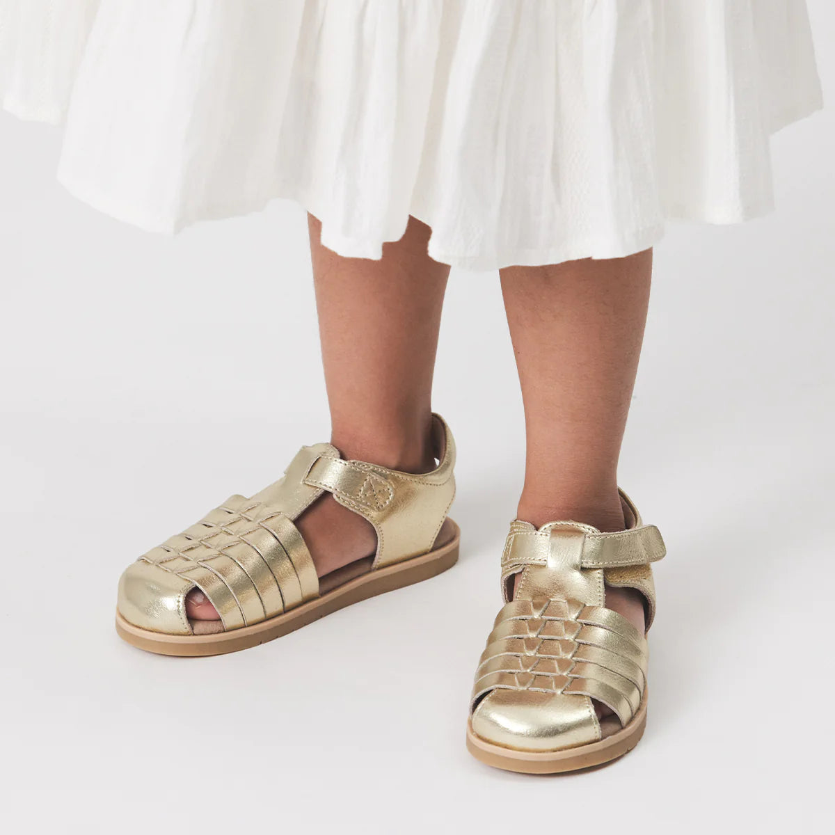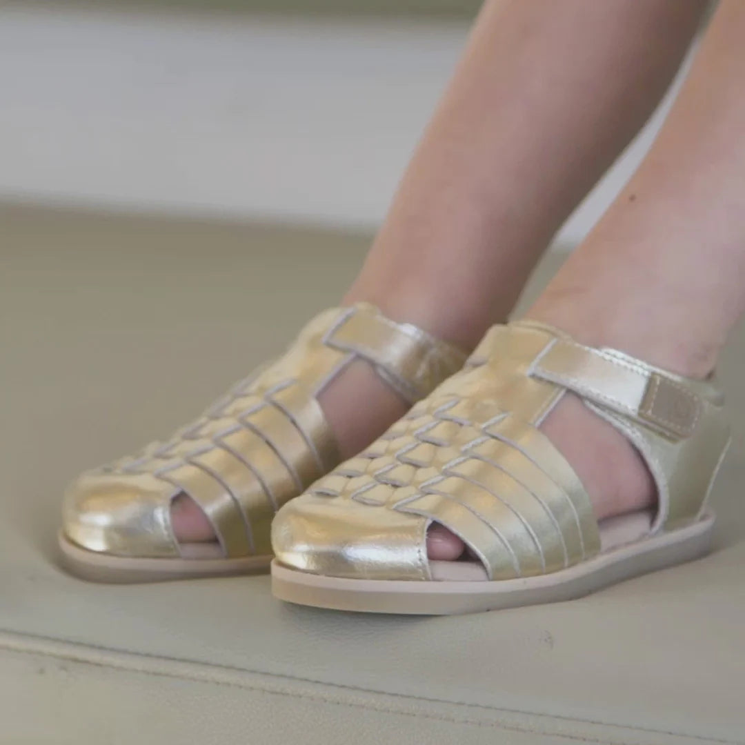 The Frankie Sandal combines latest trends and practical features for a go-to summer sandal. Featuring a beautiful woven strap design and open sides and heel, the Frankie ensures airflow and breathability for summer months, whilst the closed toe adds extra protection. With a padded ankle, cushioned leather insole and adjustable Velcro strap, the Frankie brings comfort and style to little feet.