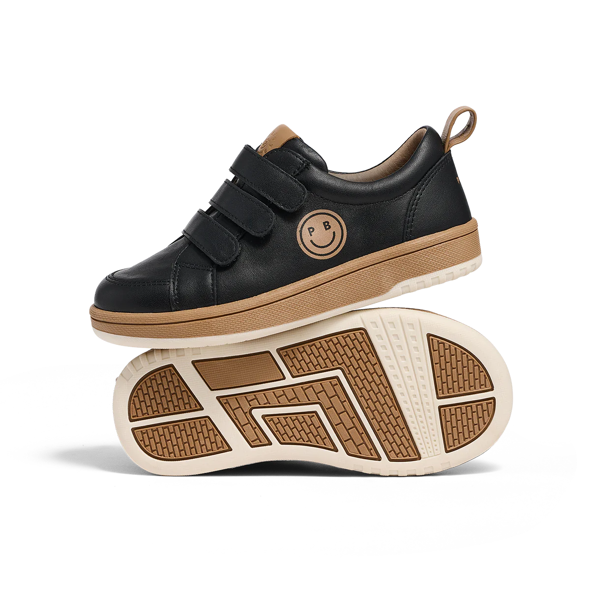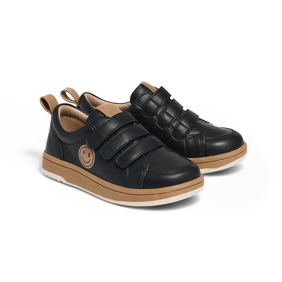 Bring a smile to their face with the Happy Trainer from Pretty Brave. Featuring a stylish, dual-colour flexible outsole, triple strap detailing and a fun smiley face side panel, the Happy Trainer is equal parts fun and cool. Made with a genuine soft leather upper and lining, this style is the ultimate kids sneaker for comfortable year-round wear.