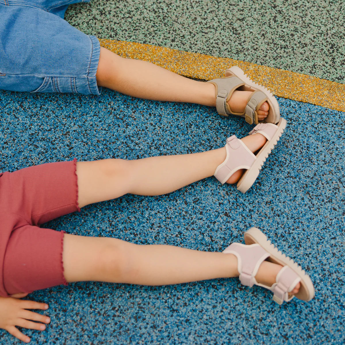 Introducing the Sporty Sandal, designed with active little feet in mind. Contrast canvas binding adds a playful touch, while rubber pull tabs on the adjustable velcro straps ensure easy wear for little ones. With a super cushioned insole and a flexible outsole, the Sporty Sandal is a comfortable and stylish choice for adventurous kids.