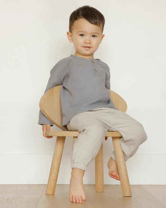Longsleeve boxy fit gauze shirt with button front closure. Pairs perfectly with our woven pant.
