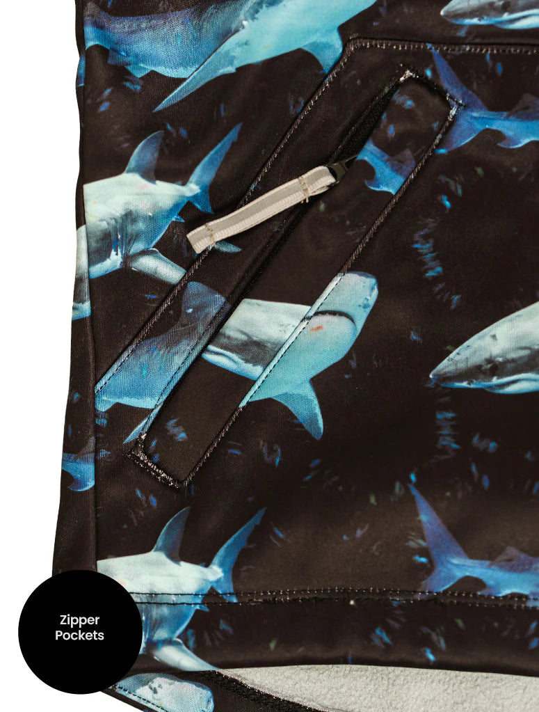 Combines the soft comfort of a hoodie with the full weather protection of a raincoat. A comfortable, casual style with a soft and stretchy feel, bonded with ultra-soft microfleece lining for warmth. Even the most stubborn child is happy to wear their ‘raincoat in disguise!’