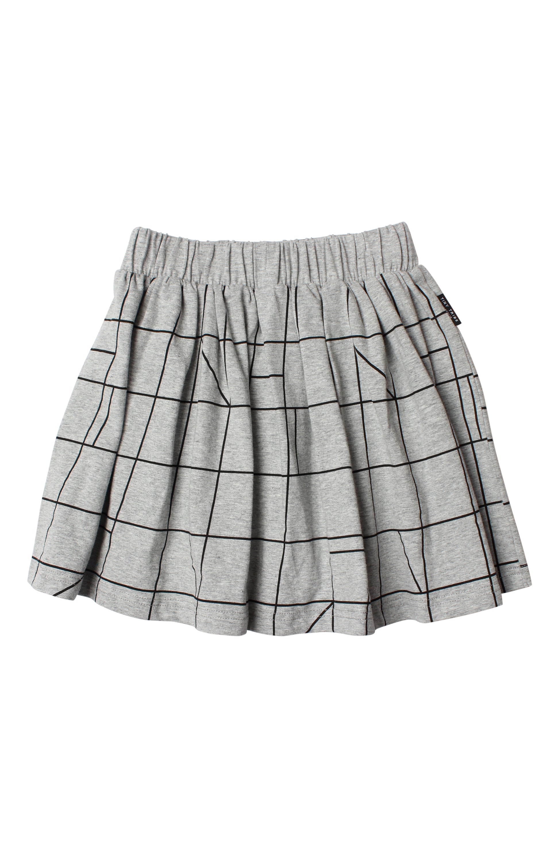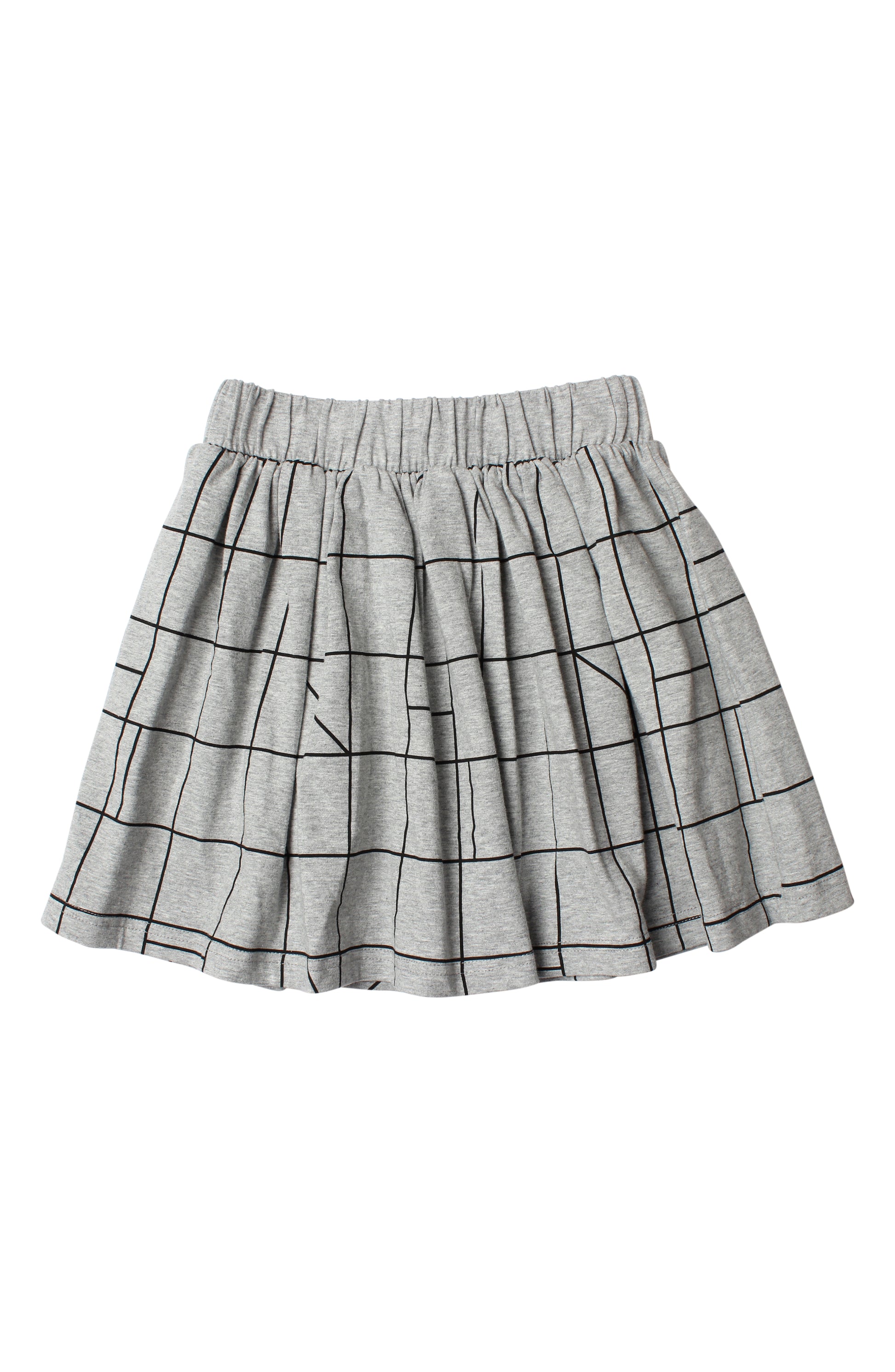 Grey Marle Skirt 94% Cotton 6% Elastane Knit with Elastic Waist and Geo Print in Black