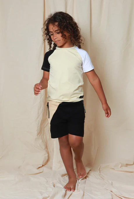 Our classic short with an elastic waist features a diagonal segment with zip feature. Crafted from French Terry, the composition provides comfort, stretch and durability. Hem detailing and elastic waist features. Designed in Australia.