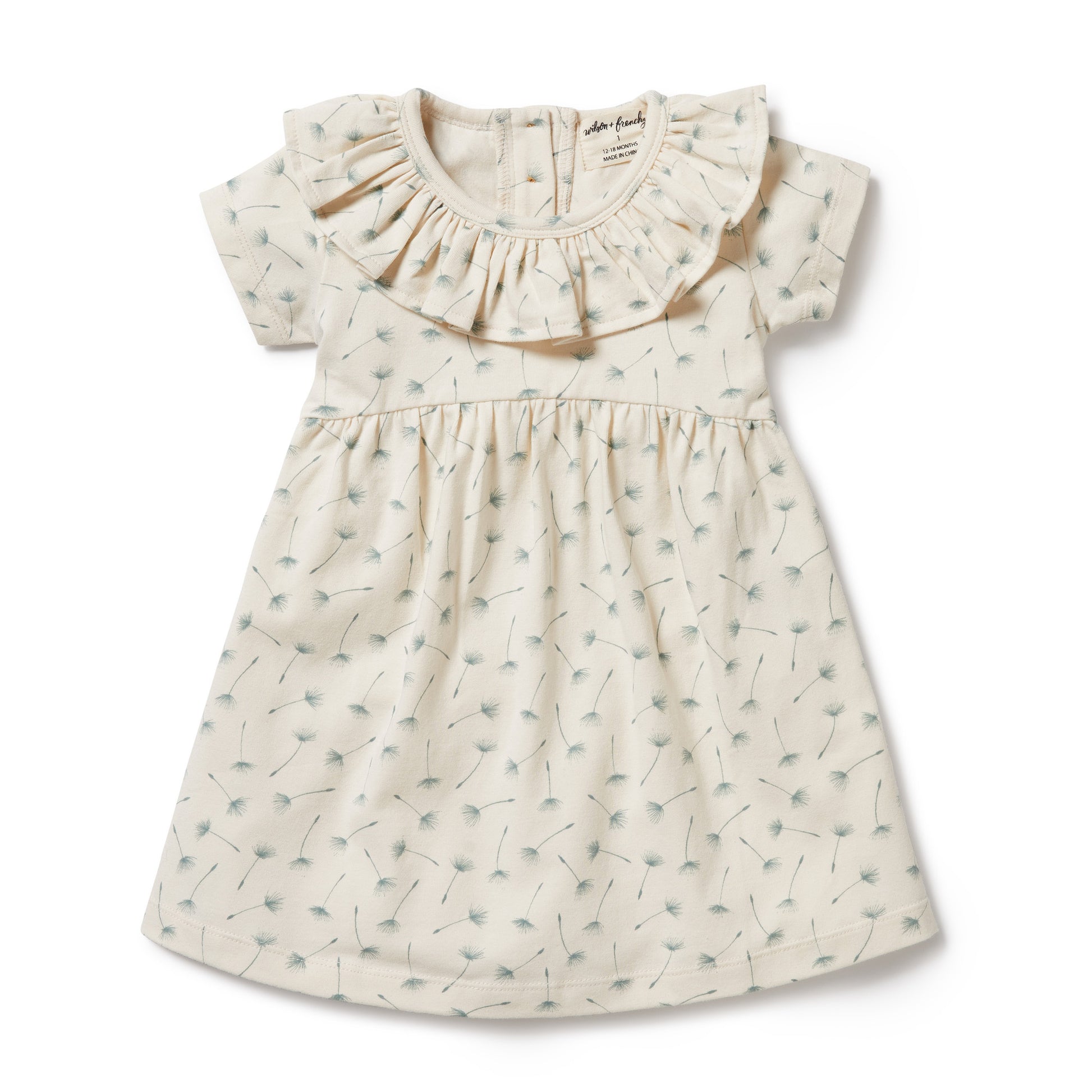 Made from beautiful organic cotton, this ruffle summer dress offers cool comfort during sunny days. The mid-length dress features a gathered neckline with a back neck button opening for easy dressing. Perfect for pairing with nappy pants, this versatile dress is ideal for warm-weather style. Key Features: Mid length, back neck button opening, soft gathered frill neckline, wrapped in a compostable bag, Details: 95% cotton, 5% elastane, machine washable, Made in China.