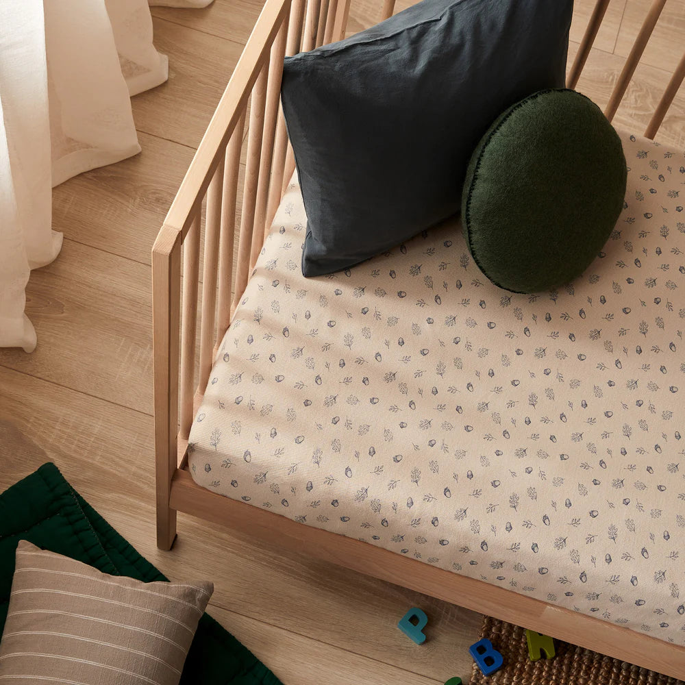 Our fitted cot sheet is made from organic cotton jersey and features a hand-illustrated all-over print. Completely breathable, it's perfect for your baby to sleep soundly in their cot. Plus, it's stretchy so it fits a range of cots, including Australian standard size as well as Boori cots.